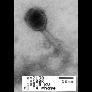 Így néz ki valójában. A kép forrása: Louisa Howard (2012) CIL:41125, Enterobaktériumok fág T4. CIL. Adatkészlet. https://doi.org/doi:10.7295/W9CIL41125 / Forrás: Magyar Kardiológusok Társasága
