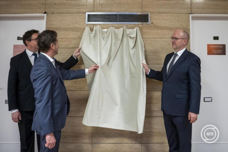 Az ünnepség végén Kökény Zoltán, Majoros Attila és Beöthe Tamás fekvőbeteg-ellátásért felelős orvosigazgató-helyettes, az urológiai osztály osztályvezető főorvosa leleplezte a márványtáblát, Madarassy István Kossuth-díjas ötvös- és szobrászművész alkotását.